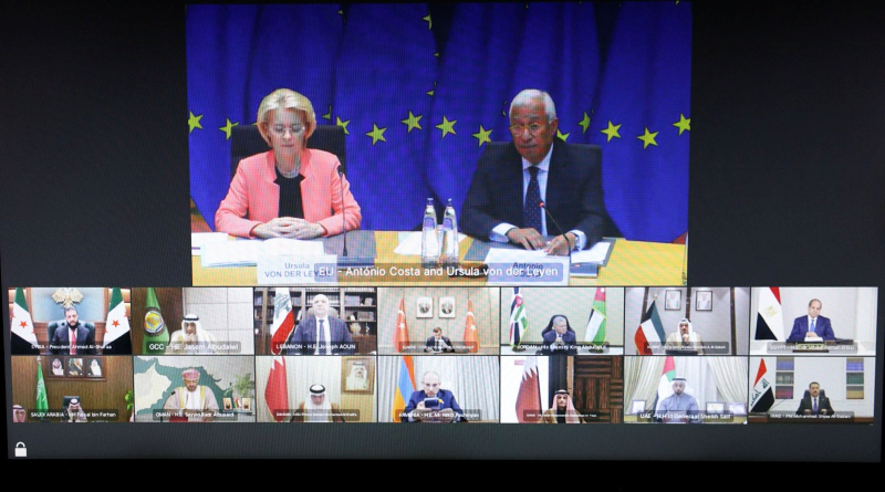 Avrupa Birliği (AB) Konseyi'nden yapılan açıklamaya göre, Konsey Başkanı Antonio Costa, AB Komisyonu Başkanı Ursula von der Leyen ile AB Dış İlişkiler ve Güvenlik Politikası Yüksek Temsilcisi Kaja Kallas'ın da katılımıyla bölgedeki ülkelerin temsilcileriyle video konferans düzenlendi. Görüşmeye Türkiye, Ürdün, Mısır, Bahreyn, Lübnan, Suriye, Ermenistan, Irak, Katar, Kuveyt, Birleşik Arap Emirlikleri (BAE), Suudi Arabistan ve Umman'dan temsilciler katıldı. Türkiye'yi Cumhurbaşkanı Yardımcısı Cevdet Yılmaz temsil etti.