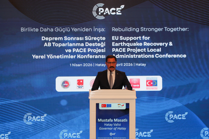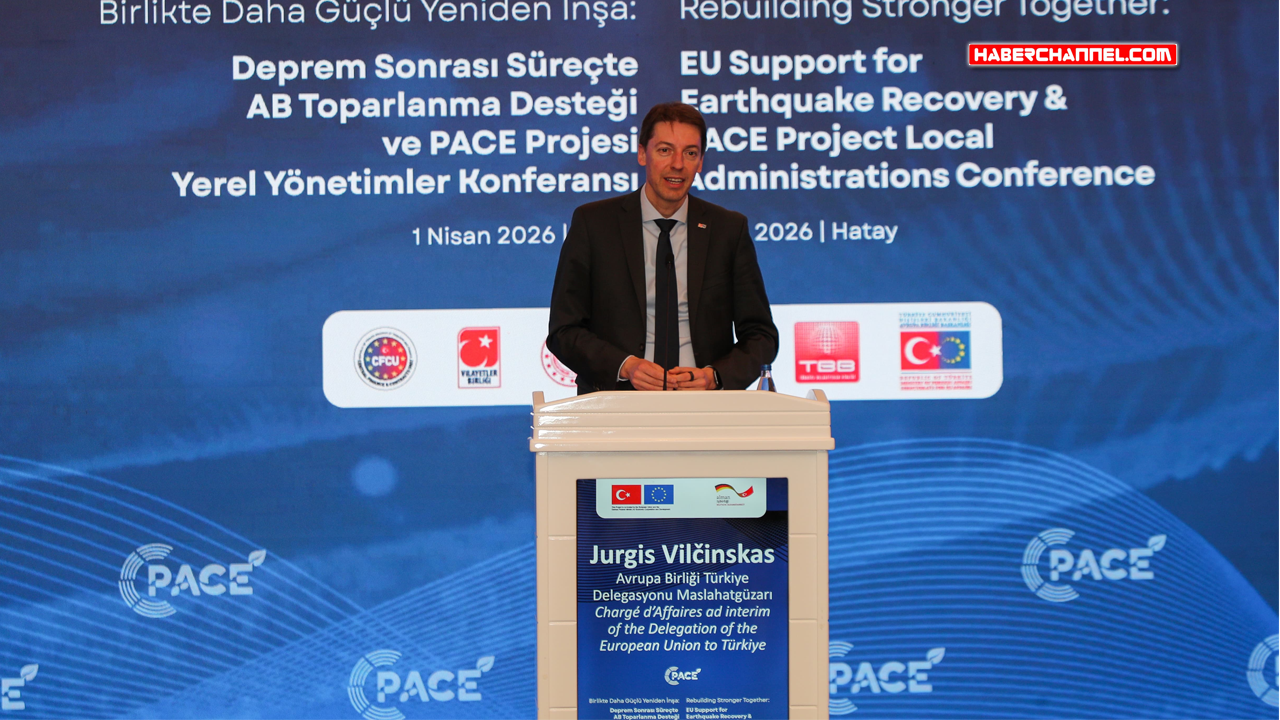 Hatay'da Avrupa Birliği (AB) destekli 'Yeniden İnşa İçin Birlikte Daha Güçlü: Deprem Sonrası İyileşmede AB Desteği ve PACE Projesi Yerel Yönetimler Konferansı’ düzenlendi. Hatay Valisi Mustafa Masatlı, AB Türkiye Delegasyonu temsilcileri, büyükelçiler, kamu kurumları ve yerel yönetim temsilcilerinin katıldığı konferansta konuşan AB Türkiye Delegasyonu Maslahatgüzarı Jurgis Vilcinskas, 6 Şubat 2023'teki depremlerden etkilenen illere yapılan destekleri hatırlattı.