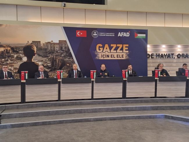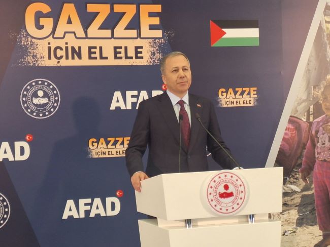 Çocukların ölmediği, annelerin ağlamadığı, babaların yavrularını elleriyle toprağa vermediği bir Filistin ve dünya için Türkiye'nin olduğunu belirten Yerlikaya, "Nasıl ki güneş her sabah yeniden doğuyorsa, nasıl ki ırmaklar çağlıyor, çiçekler açıyorsa, Gazze'de de yeni güneşler doğmaya devam edecek. Cumhurbaşkanımız Sayın Recep Tayyip Erdoğan'ın ifade ettikleri gibi; 'İsrail'in her türlü gaddarlığına, vahşetine ve saldırılarına rağmen, topraklarını terk etmeyen Gazze halkı, Gazze'de kalmaya, Gazze'de yaşamaya, Gazze'ye sahip çıkmaya devam edecektir.' Gazze'de soykırımın başladığı ilk günden itibaren, AFAD Başkanlığımız Filistinli kardeşlerimizin yaralarını sarmak için acil ve insani yardım faaliyetlerini büyük bir seferberlikle sürdürüyor. AFAD koordinasyonunda mazlum Filistin halkına insani yardım malzemelerini ulaştırabilmek için Milli Savunma Bakanlığımız ile iş birliği içinde bir hava köprüsü oluşturduk ve 14 uçak seferi gerçekleştirdik. Türk Kızılay'ı ve STK'larımızın dahil olduğu seferlerle birlikte; 15 iyilik gemisini Gazze'ye uğurladık. 96 bin tondan fazla insani yardım malzemesini Gazze'ye ulaştırdık. 8 sahra hastanesi kurduk, 53 ambulans, 2 UMKE aracı gönderdik. Viraneye dönen Gazze'de, Filistinli kardeşlerimizin yerleşik hayata geçmesine büyük önem veriyoruz. Bu amaçla 25 bini aşkın çadırı Gazze'ye ulaştırdık, ilk etapta 400'ü aşkın konteyner de iyilik gemimize yüklendi. İnşallah en kısa sürede konteynerlerin de Gazze'de kurulumuna başlayacağız" diye konuştu.