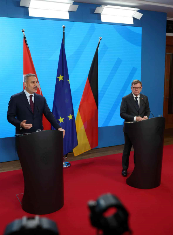 Dışişleri Bakanı Hakan Fidan, Almanya'nın başkenti Berlin'de mevkidaşı Johann Wadephul ile gerçekleştirdiği ortak basın toplantısında konuştu. Türkiye ile Almanya ilişkilerinin son dönemde yeni bir ivme ve ruh kazandığını dile getiren Fidan, bu duruma örnek olarak yakın zamanda Alman Dışişleri Bakanı Wadephul ve Almanya Başbakanı Friedrich Merz'in Türkiye'ye yaptığı ziyaretleri işaret etti.