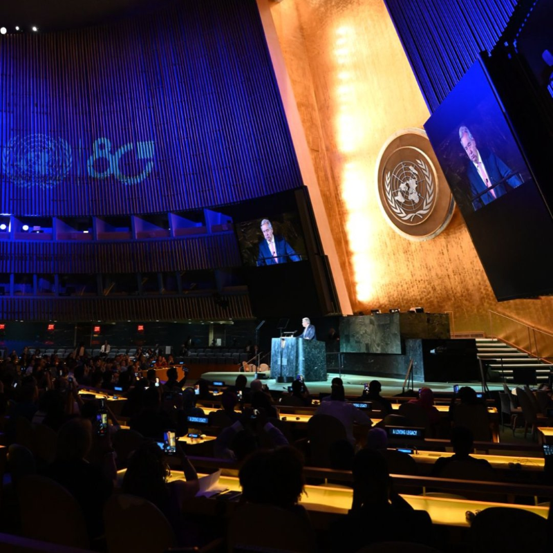 Guterres, BM ilkelerinin kuşatma altında olduğunu ve barışın temellerinin çöktüğünü aktararak, “Burası ideolojik bir tartışmanın zemini değil. Savaşın ne kadar barbar bir noktaya ilerlediğini görüyoruz. Buna izin vermememiz gerekiyor. Duruşumuz net olmalıdır. Uluslararası hukuka saygı duyacağız. Ortak bir duruş geliştirmeliyiz. Savaşa, şiddete karşı olmak ortak duruş olmalı. Barışın temelleri, cezasızlık ve eşitsizliğin ağırlığı altında çöküyor. Bizi biz yapan prensiplerin arkasında olmalıyız. Gazze'de olanlara bakın. İdeallerimizi hayata geçirmeli ve tavizsiz bir şekilde uygulamalıyız” şeklinde konuştu.