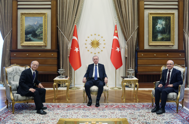 Cumhurbaşkanı Erdoğan, Asya Kalkınma Bankası Başkanı Masato Kanda'yı Cumhurbaşkanlığı Külliyesi'nde kabul etti. Kabulde, Hazine ve Maliye Bakanı Mehmet Şimşek de bulundu.