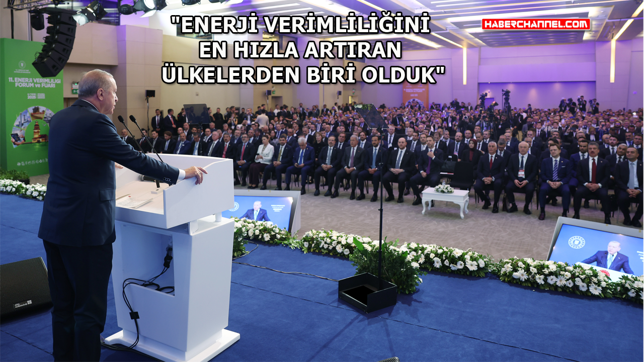 Cumhurbaşkanı Erdoğan, "Biz dereden abdest alırken dahi suyu israf etmeme emrinin muhataplarıyız. Enerji verimliliği ve israfın önlenmesi, bizim için stratejik olduğu kadar medeniyet değerlerimizle de irtibatlı bir konudur. Enerji verimliliği, en temiz ve en ucuz enerji kaynağıdır. Bunun yanı sıra, verimliliği 2053 net sıfır emisyon vizyonumuzun yapı taşlarından biri haline getirdik. Enerji verimliliğini, tasarrufun da ötesinde sanayide rekabet gücümüzü artıran ve iklim kriziyle mücadelede elimizi güçlendiren bir unsur olarak görüyoruz. Bu anlayışla, hükümet olarak 2002’den beri enerji verimliliğimizi artırmaya dönük kapsamlı projeler yürüttük. Bunlar sayesinde enerji yoğunluğunu yüzde 32 oranında iyileştirdik. Ürün ve hizmet başına tüketilen enerji miktarını üçte bir oranında azalttık. Dünya enerji yoğunluğunu yıllık ortalama yüzde 1 oranında iyileştirirken, Türkiye yüzde 4,5 oranında iyileştirme sağladı. Böylece enerji verimliliğini en hızlı artıran ülkelerden biri olduk. 2024 yılında sanayide yapılan enerji verimliliği yatırımlarıyla 700 milyon liralık kazanç elde edildi. Yalnızca sanayide kullanılan 4 milyon verimsiz elektrik motorunun değiştirilmesiyle yıllık 15 milyar liralık tasarruf yapıyoruz. Tarım sektöründe ise damla ve basınçlı sulama sistemleriyle yüzde 30-40 tasarruf sağladık. Konutlarda da enerji verimliliğini teşvik eden uygulamaları hayata geçirdik. Bu örneklerin sayısını daha da artırmak mümkün" ifadelerine yer verdi.