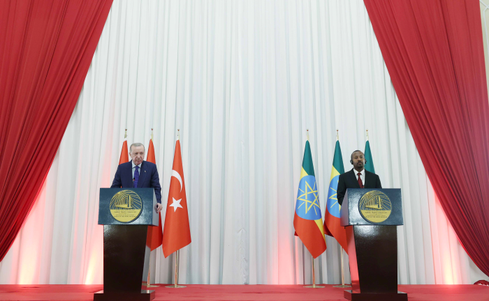 Cumhurbaşkanı Recep Tayyip Erdoğan, resmi temaslarda bulunmak üzere gittiği Etiyopya’da, Başbakan Abiy Ahmed Ali ile Ulusal Saray'da bir araya geldi. Baş başa ve heyetler arası görüşmelerin ardından anlaşmaların imza törenine katılan iki lider, daha sonra ortak basın toplantısı düzenledi. Konuşmasına Başbakan Ali ve Etiyopya makamlarına, şahsına ve heyetine gösterdikleri sıcak misafirperverlikten dolayı teşekkür ederek başlayan Erdoğan, Etiyopya'nın Türkiye için kardeş ülke olmasının yanı sıra; stratejik konumu, siyasi, ekonomik ve kültürel ağırlığıyla Afrika kıtasında oynadığı öncü rol bakımından son derece önemli bir ülke olduğunu vurguladı.