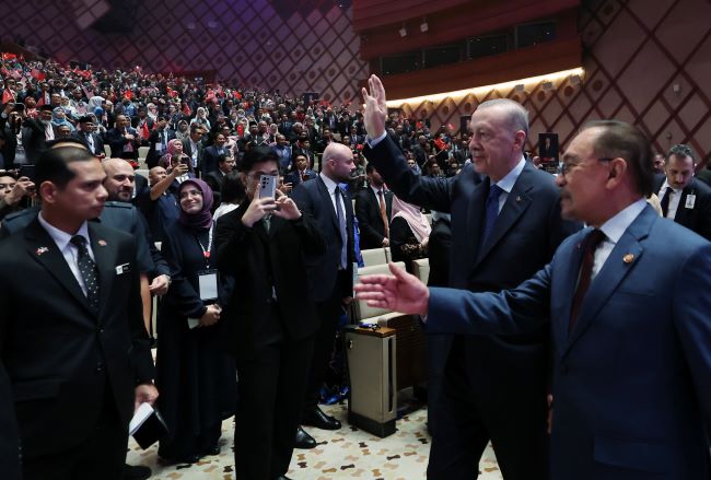 Cumhurbaşkanı Erdoğan, Malezya ile Türkiye arasındaki ilişkileri, 2014 yılında stratejik ortaklık seviyesine, 2022 yılında da kapsamlı stratejik ortaklık düzeyine yükselttiklerini söyledi. Malezya’nın 35 milyona yaklaşan nüfusu, dinamik ekonomisi ve yetişmiş insan kaynağıyla bölgesindeki öncü ülkelerin en başında geldiğini bildiren Erdoğan, “Halklarımız arasındaki köklü ve yakın ilişkilere yakışır şekilde iş birliğimizi somut adımlarla tahkim etmeye başladık. Münasebetlerimizi teknolojik iş birliği ve ortak üretim vizyonuyla özellikle bu tür bir yaklaşımla geliştirmeyi hedefliyoruz. Bu vizyonumuzun meyvelerini toplama aşamasına geldik. TUSAŞ Malezya yüzden fazla Malezyalı genç mühendise çalışma imkanı sunan etkin bir tesis haline dönüştü. Savunma sanayi firmalarımızın iş birliği ile ikinci parti kıyı görev gemileri inşa edilmeye başlandı. ANKA İHA'lar konusunda önemli iş birliğimiz var. Ticaret hacminde ortaya koyduğumuz hedeflere uygun olarak 2024 yılında 5 milyar doları aştık. Ticareti dengeli şekilde 10 milyar dolara çıkarmayı hedefliyoruz” ifadelerine yer verdi.