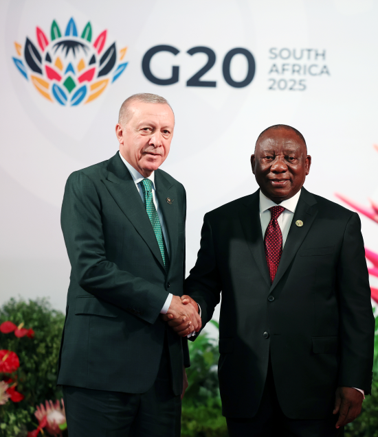 Cumhurbaşkanı Recep Tayyip Erdoğan, zirvenin düzenlendiği Johannesburg Expo Center'a gelerek, G20'ye ev sahipliği yapan Güney Afrika Cumhurbaşkanı Cyril Ramaphosa tarafından karşılandı. Cumhurbaşkanı Erdoğan, Ramaphosa ile tokalaşarak, hatıra fotoğrafı çektirdi.
