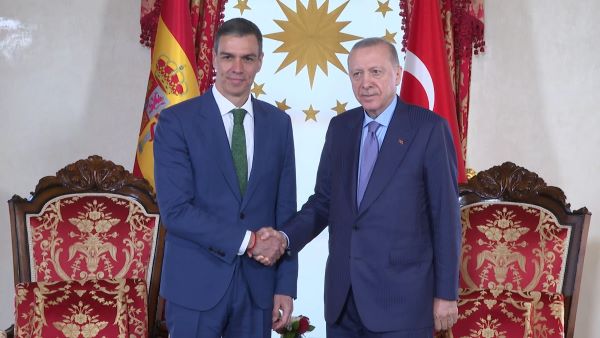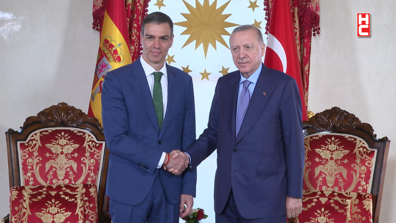 "Görüşmede, Türkiye ile İspanya ikili ilişkileri, bölgesel ve küresel konular ele alındı. Cumhurbaşkanı Erdoğan görüşmede, Türkiye ile İspanya arasındaki ticaret hacmini artırmak için çalışmaların sürdüğünü, iki ülkenin savunma sanayii ve ulaştırma başta olmak üzere birçok alanda iş birliğini ilerletmek için gayret göstermeye devam edeceklerini ifade etti. Cumhurbaşkanı Erdoğan, İspanya’nın İsrail’in Gazze’deki soykırımına karşı dirayetli ve onurlu bir duruş sergilediğini, Türkiye’nin önceliğinin Gazze’ye insani yardımların ulaştırılması olduğunu, ortaya konacak ortak çabalar neticesinde Filistin’de zulmün son bulacağına inandığını belirtti. Cumhurbaşkanı Erdoğan, Türkiye’nin Avrupa Birliği’ne üyelik hedefinde sapma olmadığını, üyelik sürecinin canlandırılması için Avrupa Birliği’nden yapıcı adım beklendiğini söyledi. Cumhurbaşkanı Erdoğan görüşmede, Ukrayna ile Rusya arasındaki savaşın sona ermesi için Türkiye’nin gayretlerine devam ettiğini, Türkiye’nin Ukrayna ve Rusya arasında İstanbul’da gerçekleşen görüşmelerde ele alınan esir değişimi gibi konuları, güven artırıcı önemli bir adım olarak gördüğünü, savaşın bitirilmesi için ortaya çıkan fırsatın heba edilmemesi gerektiğini ifade etti. Görüşmeye, Dışişleri Bakanı Hakan Fidan, Cumhurbaşkanlığı İletişim Başkanı Fahrettin Altun, Cumhurbaşkanı Dış Politika ve Güvenlik Başdanışmanı Akif Çağatay Kılıç da katıldı" ifadeleri kullanıldı.