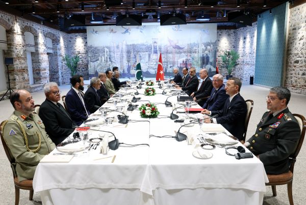 Cumhurbaşkanı Recep Tayyip Erdoğan, Milli Savunma Bakanı Yaşar Güler'in havalimanında resmi törenle karşıladığı Pakistan Başbakanı Şahbaz Şerif’i İstanbul'da Cumhurbaşkanlığı Dolmabahçe Çalışma Ofisi'nde kabul etti. Görüşmeye, Dışişleri Bakanı Hakan Fidan, Millî Savunma Bakanı Yaşar Güler, Millî İstihbarat Teşkilatı Başkanı İbrahim Kalın, Cumhurbaşkanlığı İletişim Başkanı Fahrettin Altun, Cumhurbaşkanı Dış Politika ve Güvenlik Başdanışmanı Akif Çağatay Kılıç ve Kara Kuvvetleri Komutanı Selçuk Bayraktaroğlu da katıldı.