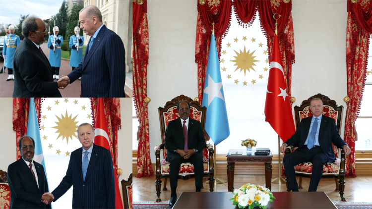 Cumhurbaşkanı Recep Tayyip Erdoğan, davetine icabetle Türkiye'ye gelen Somali Cumhurbaşkanı Hasan Şeyh Mahmud ile Cumhurbaşkanlığı Dolmabahçe Ofisi'nde heyetler arası görüşme gerçekleştirdi.