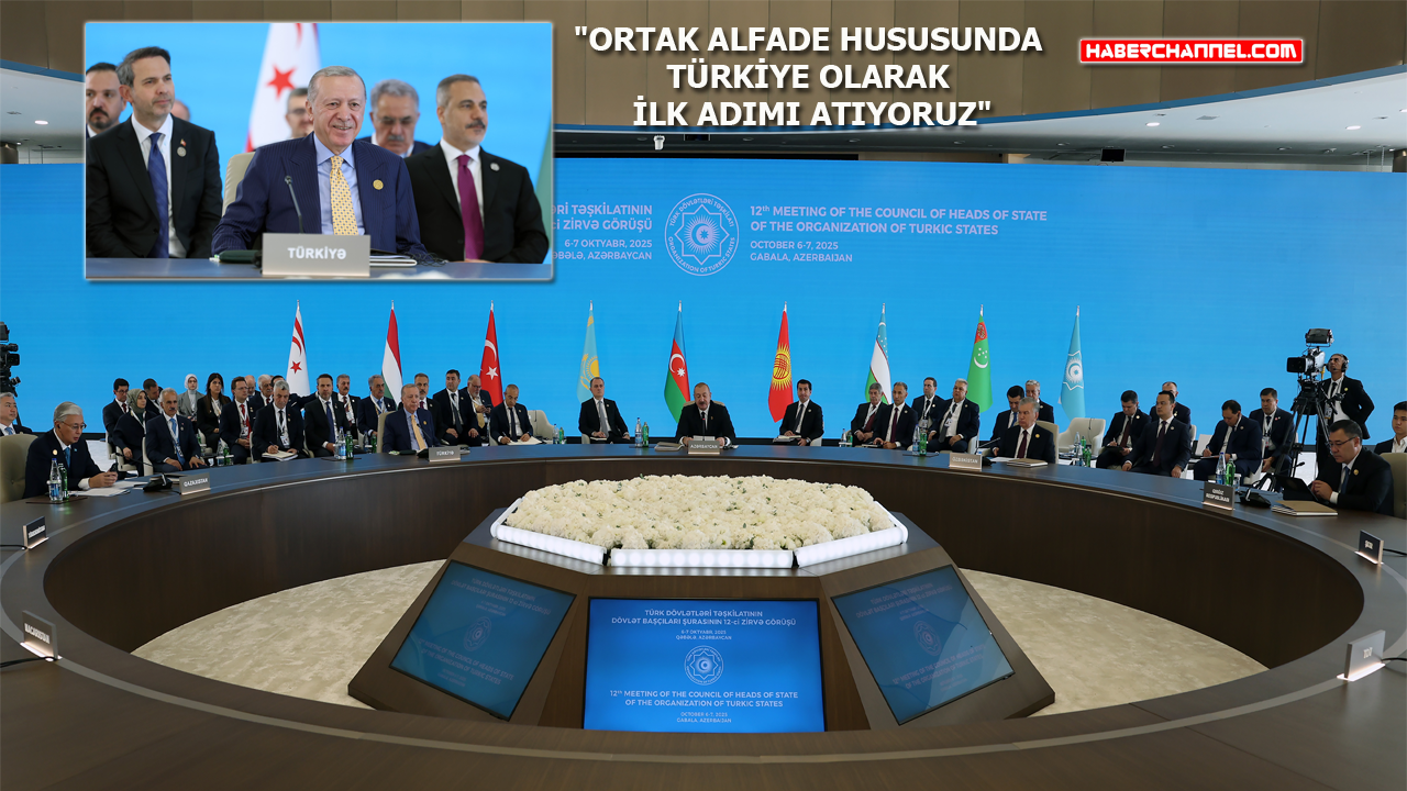 Cumhurbaşkanı Erdoğan, ortak alfabe konusunda Türkiye olarak ilk adımı attıklarını dile getirerek, “Türk Devletleri olarak bilim ve teknoloji alanında hak ettiğimiz noktaya en kısa süre zarfında ulaşabilmemiz için güçlü iş birlikleri kurmalı ve bu alanda yüksek katma değere sahip ortak yatırımlar yapmalıyız. Yapay zeka konusunda küresel gelişmeleri yakalayabilmek ve kültürel zenginliğimizi muhafaza için Türkçe büyük dil modelinin geliştirilmesine hız vermemiz gerekiyor. Ortak alfabe hususunda Türkiye olarak ilk adımı atıyor, Cengiz Aytmatov'u anlatan bir eser ile Oğuznameleri ortak alfabe ile basıyoruz. Bugün de liderlere birer adet bundan takdim ediyoruz. Aynı şekilde, Türk Dünyası Yayıncılık Kongresi'ni gelecek yıl ocak ayında Ankara'da toplamayı planlıyoruz. 30 Ekim'den itibaren Semerkant'ta düzenlenecek olan UNESCO 43’üncü Genel Konferansı'nda 15 Aralık'ın Dünya Türk Dili Ailesi Günü olarak ilan edilmesini temenni ediyorum. Özbek kardeşlerimize bu önemli genel konferansın tertiplenmesinde şimdiden muvaffakiyetler diliyorum” şeklinde konuştu.