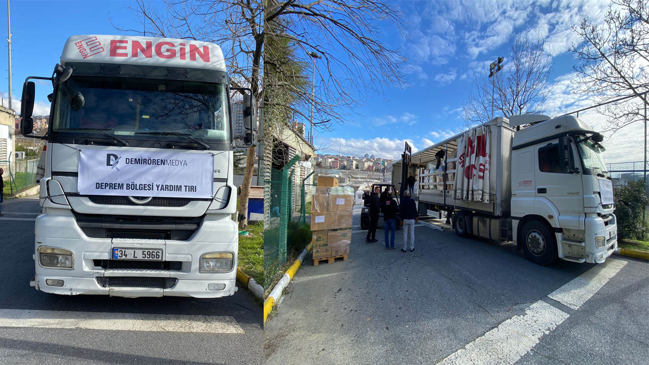 Demirören Medya çalışanlarının depremzedeler için topladığı malzemelerinin bulunduğu yardım TIR'ı yola çıktı.