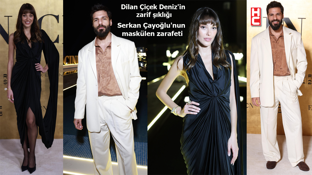 Siyah, asimetrik omuz tasarımı ve heykelsi drapeleriyle dikkat çeken Loewe elbisesiyle geceye modern ve sade bir zarafet taşıyan Dilan Çiçek Deniz, görünümünü Balenciaga ayakkabılar ve global marka yüzü olduğu Boucheron'un yüksek mücevher koleksiyonundan seçtiği parçalarla tamamladı. Başarılı oyuncu, güçlü stil yorumu ile gecenin en etkileyici stil ikonları arasında yer aldı.