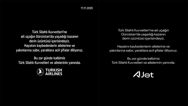Azerbaycan’dan Türkiye’ye gelmek üzere havalanan kargo uçağının Gürcistan-Azerbaycan sınırında düşmesinin ardından Türk Hava Yolları (THY), Pegasus ve AJet taziye paylaşımında bulundu.