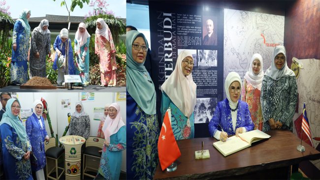 Emine Erdoğan'ı bahçe ziyaretine Malezya Başbakanı Enver İbrahim'in eşi Dr. Wan Azizah İsmail, Malezya Devlet Bakanı Zaliha binti Mustafa ve Kuala Lumpur Belediye Başkanı Maimunah Mohd Sharif karşıladı. Kuala Lumpur Belediyesi ve Malezya Yeşil Teknoloji ve İklim Değişikliği Kurumunun da aralarında olduğu çeşitli kamu kurumlarının stantlarını ziyaret eden Emine Erdoğan, atık malzemenin geri dönüştürülme süreçleri hakkında yetkililerden bilgi aldı. Perdana Botanik Bahçesi anı defterini imzalayan Emine Erdoğan ve Dr. Wan Azizah İsmail, ziyaret anısına bahçeye, gücü ve dayanıklılığı temsil etmesi ve derin kültürel öneme sahip olması nedeniyle 'Malezya'nın Ulusal Ağacı' olarak nitelendirilen 'merbau' ağacını dikti.
