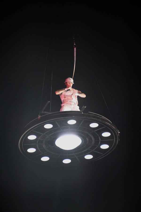 Röportajın ardından büyük çığlıklar ve tezahüratlar eşliğinde sahneye çıkan Çakal, UFO görünümlü özel tasarlanmış vinçle gökyüzünden süzülerek konser alanına indi. Seyircilerin nefesini kesen bu an, geceye damgasını vurdu.