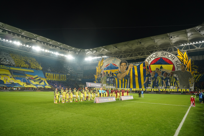 Chobani Stadyumu Fenerbahçe Şükrü Saraçoğlu Spor Kompleksi’ndeki mücadele öncesinde tribünleri saatler öncesinde dolduran sarı-lacivertli taraftarlar, maç öncesinde yapılan koreografi ile görsel şölen oluşturdu.