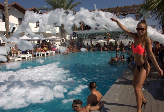 ALANYA'DA DÜZENLENEN 'HOLIFEST- POWDER COLOR PARTY'DE BİR ARAYA GELEN YERLİ VER YABANCI TATİLCİLER MÜZİK EŞLİĞİNDE DANS EDİP, TOZ BOYALARI BİRBİRİNE ATARAK RENKLİ GÖRÜNTÜLER OLUŞTURDU