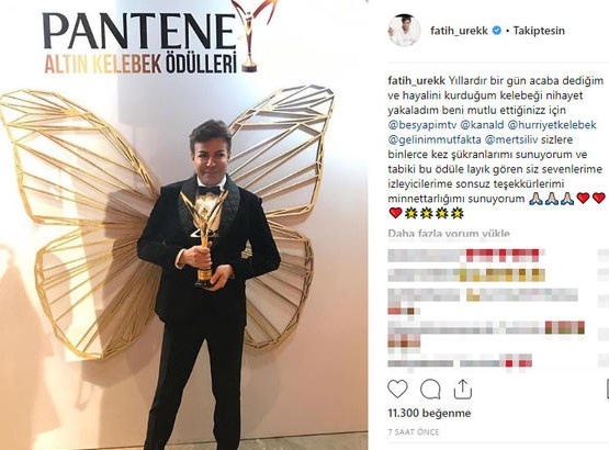 Yıllardır bir gün acaba dediğim ve hayalini kurduğum kelebeği nihayet yakaladım beni mutlu ettiğiniz için Best Yapım, Kanal D, Gelinim Mutfakta, Mert Siliv sizlere binlerce kez şükranlarımı sunuyorum ve tabi ki bu ödüle layık gören siz sevenlerime izleyicilerime sonsuz teşekkürlerimi minnettarlığımı sunuyorum.