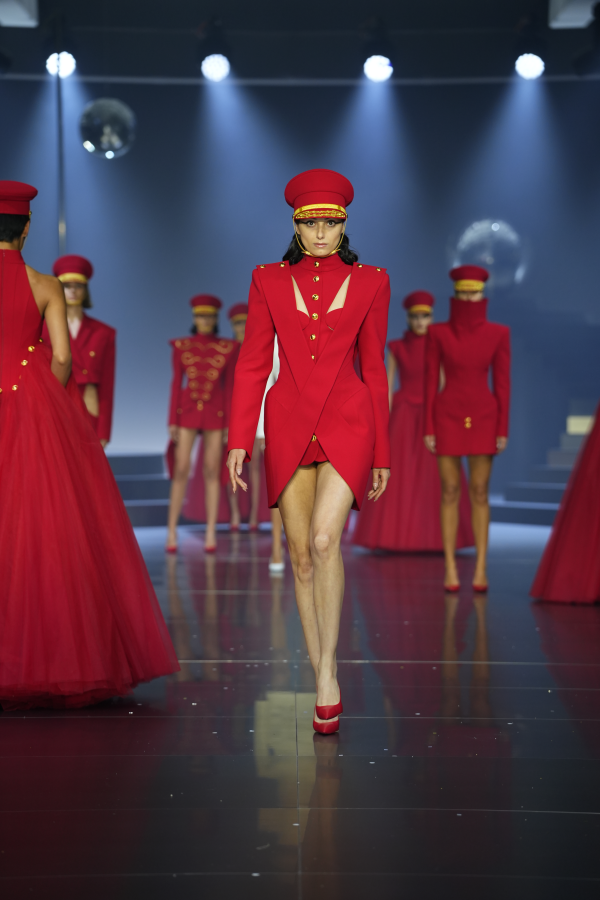 Defilenin bir bölümünde duyulan organize adım sesleri, metalik ritimler ve uzaktan gelen toplu tekrarlar… Sahneye yansıyan bu ses düzeni, koleksiyonun kişisel anlatısını daha büyük, daha kolektif bir bağlama taşıdı—yoruma açık, güçlü bir not olarak yerini aldı.
