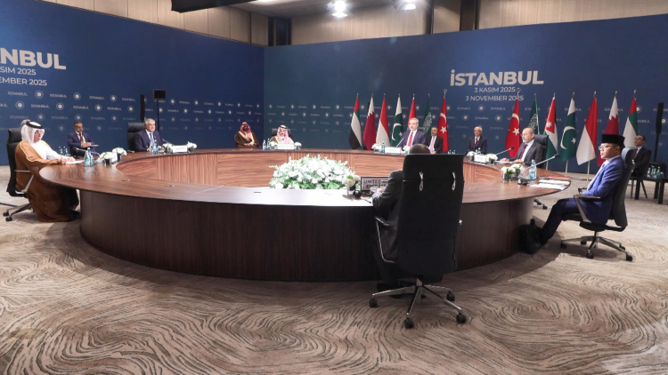 Dışişleri Bakanı Hakan Fidan, "Bugün İstanbul’da bölgesel barış ve istikrar açısından son derece önemli bir toplantıya ev sahipliği yaptık. Gazze’deki ateşkes sürecini değerlendirdik ve insani yardımlar konusunu ele aldık. Toplantımıza, Endonezya, Katar, Pakistan, Suudi Arabistan, Ürdün ve Birleşik Arap Emirliklerinin kıymetli temsilcileri katıldı. Mısırlı mevkidaşımız da bizimle burada olacaktı fakat ülkesindeki çok önemli bir uluslararası toplantıdan dolayı bizimle bir arada olamadı. Sayın Cumhurbaşkanımız ve 7 kardeş ülkenin liderlerinin ABD Başkanı Trump ile New York’ta yaptıkları toplantı, bildiğiniz gibi yeni bir süreci başlatmıştı. Akabinde Şam El-Şeyh’te gerçekleştirilen zirvede ortaya çıkan barış umudu, bütün dünyanın desteğini kazandı. Varılan anlaşma kapsamında rehine ve mahkumların takasıyla insani yardımların girişi başlamış, İsrail güçleri ilk etapta belirlenen hatta geri çekilmiş ve Gazze’nin kuzeyine geri dönüşler gerçekleşmiştir. Ancak mutabakatın harfiyen uygulanması konusunda bildiğiniz gibi bazı sorunlar da yaşanmaktadır. İsrail ateşkesi düzenli biçimde ihlal ediyor ve insani yardımın ihtiyaç duyulan düzeyde olmasına engel oluyor. Artık son derece kritik bir aşamaya ulaşmış durumdayız. Bugünkü toplantıya katılan ülkelerin ortak bir görüşü var. Gazze’deki soykırımın yeniden başlamasını istemiyoruz. Ateşkesin sürmesini ve iki devletli kalıcı barışın tesisi yönünde adımlar atılmasını da sonuna kadar destekliyoruz. Bu konuda üzerimize düşen görevi yerine getirmeye hazır olduğumuzu da ifade etmek istiyorum. Uluslararası toplumun da İsrail üzerindeki baskısını devam ettirmesi gerekmektedir" diye konuştu.