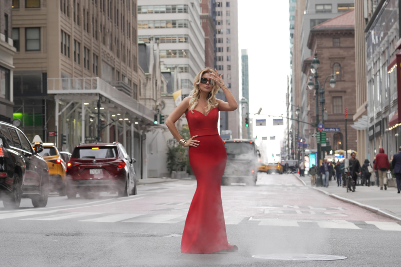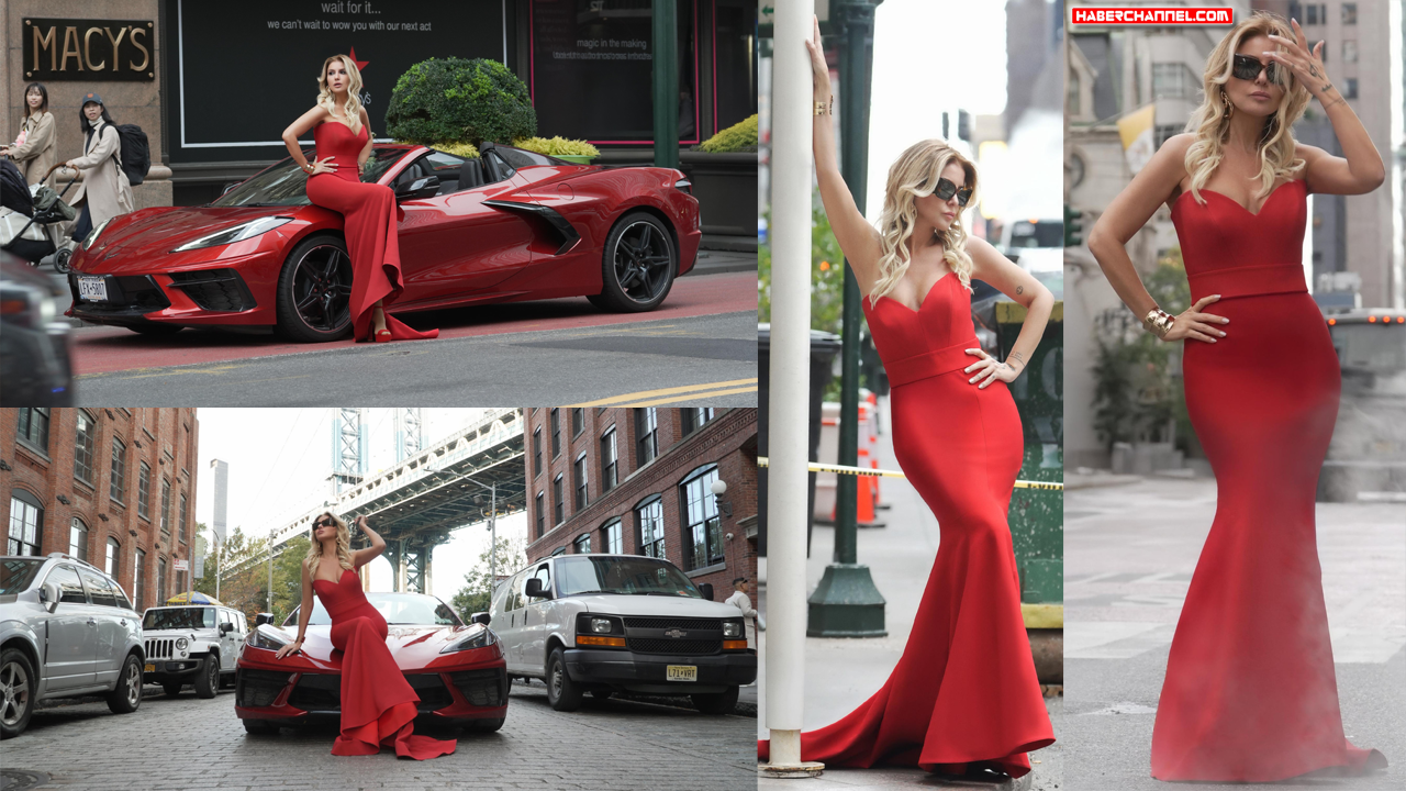 Güzel sanatçı Gülben Ergen’in Hakan Akkaya imzalı kırmızı kıyafetiyle New York’ta çekilen kareleri, sosyal medyada kısa sürede yoğun ilgi gördü.