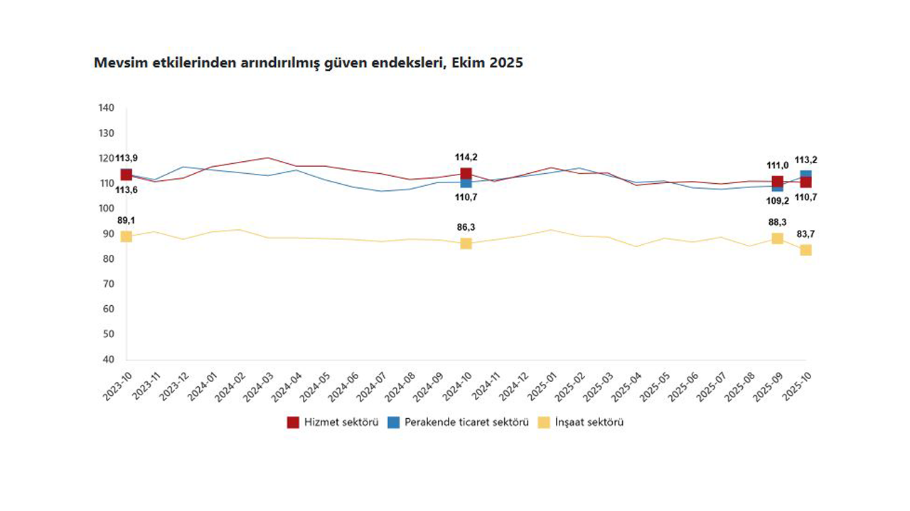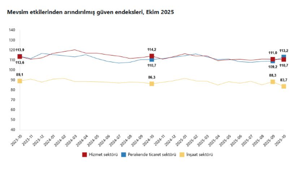TÜİK, Ekim 2025 dönemine ilişkin hizmet, perakende ticaret ve inşaat güven endekslerini açıkladı.