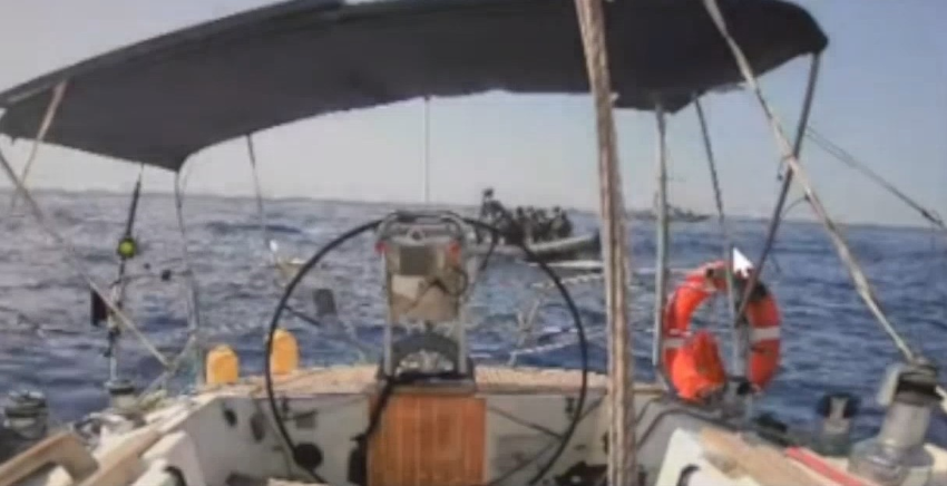 'Marinette' teknesinden yapılan canlı yayında İsrail donanmasından bir geminin tekneye yanaştığı görüldü. Baskının ardından gemi ile bağlantı kesildi. Teknede 4'ü Türk, 6 kişi bulunuyordu.