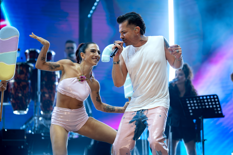 Doğulu’ya sahnede başarılı müzisyenlerden oluşan ekibi ve profesyonel dansçıların yanı sıra yeğeni Arya Doğulu da back vokalleriyle eşlik etti.