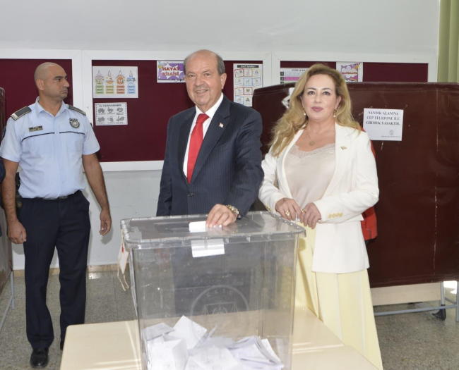 Kuzey Kıbrıs Türk Cumhuriyeti (KKTC) Cumhurbaşkanı ve bağımsız cumhurbaşkanı adayı Ersin Tatar, eşi Sibel Tatar ile oyunu, Lefkoşa Şehit Tuncer İlkokulu’nda 157 numaralı sandıkta kullandı. Tatar, oyunu kullandıktan sonra gazetecilere açıklamalarda bulundu.