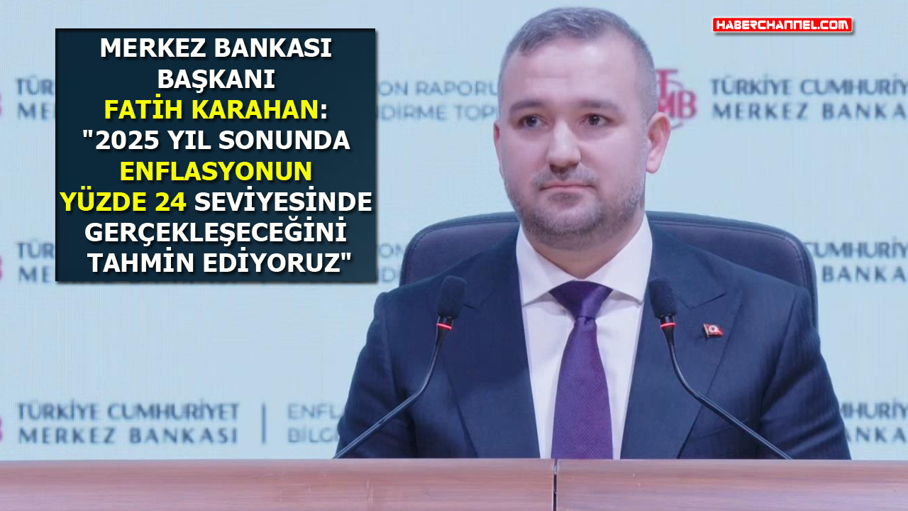 Türkiye Cumhuriyet Merkez Bankası Başkanı Fatih Karahan, yılın ilk Enflasyon Raporu'nun tanıtımı amacıyla İstanbul Finans Merkezi Türkiye Cumhuriyet Merkez Bankası Yerleşkesi'nde bilgilendirme toplantısı düzenledi. Karahan "Enflasyonun 2025 yıl sonunda yüzde 24 olarak gerçekleşeceğini tahmin ediyoruz" dedi.