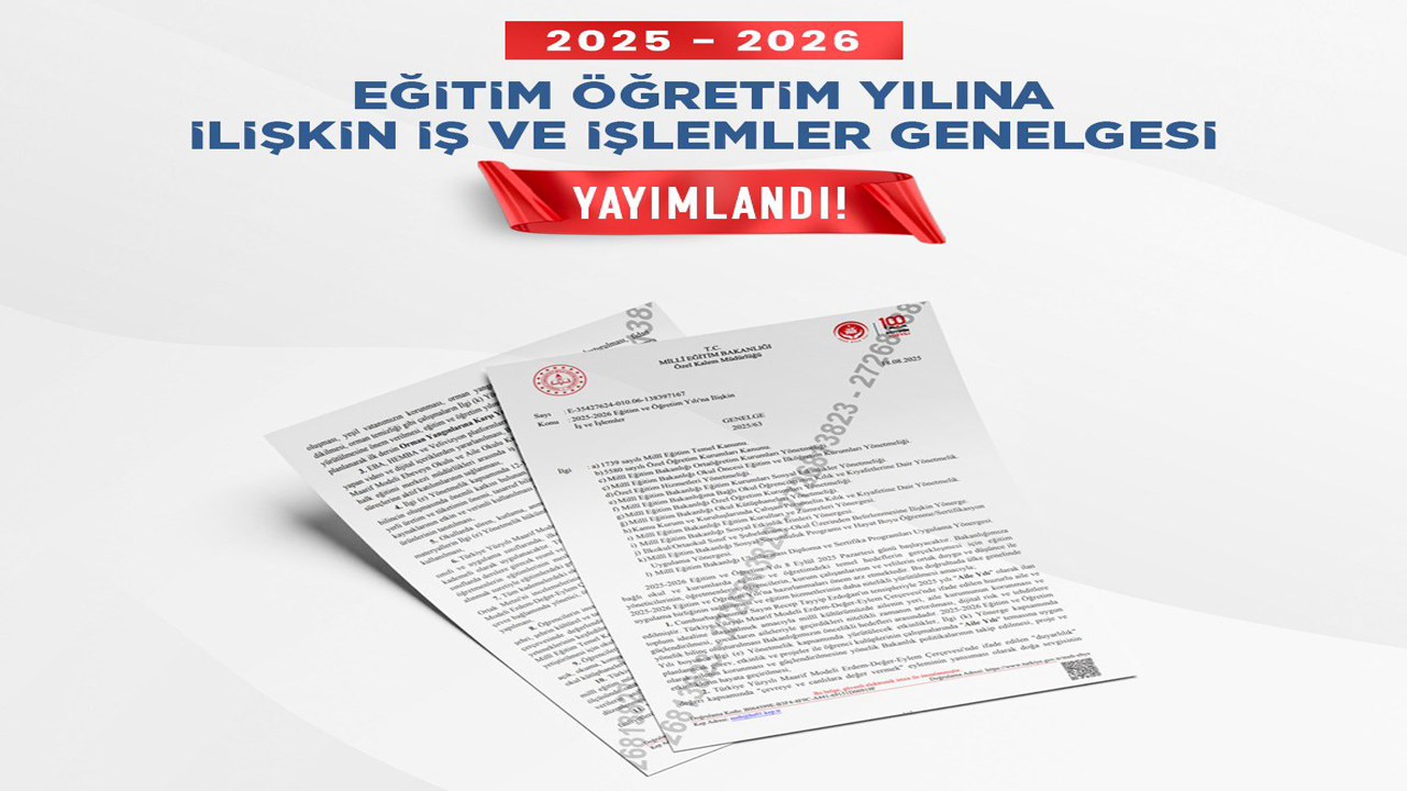 2025-2026 eğitim ve öğretim yılı 8 Eylül 2025 Pazartesi günü başlayacak. MEB, yeni eğitim ve öğretim yılı öncesi eğitim yöneticileri, öğretmenler, öğrenciler, kurum çalışanları ve velilerin ortak duygu ve düşüncelerle 2025-2026 eğitim öğretim yılına hazırlanmaları, ülke genelinde uygulama birliğinin sağlanması ve eğitim hizmetlerinin daha nitelikli yürütülmesi amacıyla '2025-2026 Eğitim ve Öğretim Yılına İlişkin İş ve İşlemler' konulu genelge hazırladı. Genelge, Milli Eğitim Bakanı Yusuf Tekin'in imzasıyla yayımlandı.