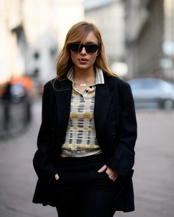 Yeni güneş gözlükleri; güçlü asetat detaylarla şekillendirilmiş, şık ve dikdörtgen ön çerçeveleriyle dikkat çekiyor. Tasarımı öne çıkaran unsur ise; üçgen formdaki sapları süsleyen, dokulu ve yapıştırma asetat eklenti detayı.