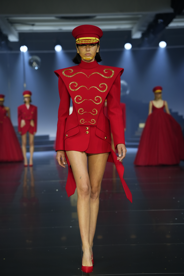 Defilenin bir bölümünde duyulan organize adım sesleri, metalik ritimler ve uzaktan gelen toplu tekrarlar… Sahneye yansıyan bu ses düzeni, koleksiyonun kişisel anlatısını daha büyük, daha kolektif bir bağlama taşıdı—yoruma açık, güçlü bir not olarak yerini aldı.