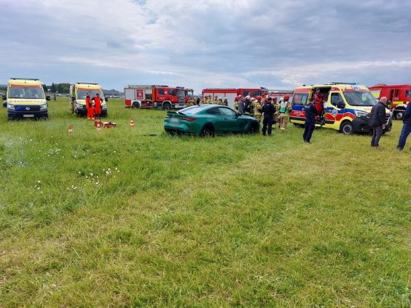 Polonya’da Krosno Havaalanı’da düzenlenen araba yarışında, 27 yaşındaki sürücü direksiyon hakimiyetini kaybederek aracıyla seyircilerin arasına girdi.