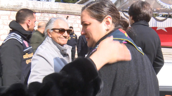 Bu sırada Ortaylı'nın kızı Tuna Ortaylı Kazıcı'yı yakınları teskin etti. Cenaze vatandaşların omuzlarında camii avlusuna alınarak musalla taşına konuldu.