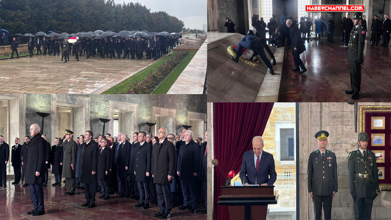 TBMM Başkanı Numan Kurtulmuş ve beraberindeki heyet, Aslanlı Yol'dan yürüyerek, Atatürk'ün mozolesine geldi. Törene Kurtulmuş'un yanı sıra; Cumhurbaşkanı Yardımcısı Cevdet Yılmaz, CHP Genel Başkanı Özgür Özel, İYİ Parti Genel Başkanı Müsavat Dervişoğlu, Aile ve Sosyal Hizmetler Bakanı Mahinur Özdemir Göktaş, Milli Eğitim Bakanı Yusuf Tekin, Sağlık Bakanı Kemal Memişoğlu, Meclis Başkan Vekilleri ve milletvekilleri de katıldı.