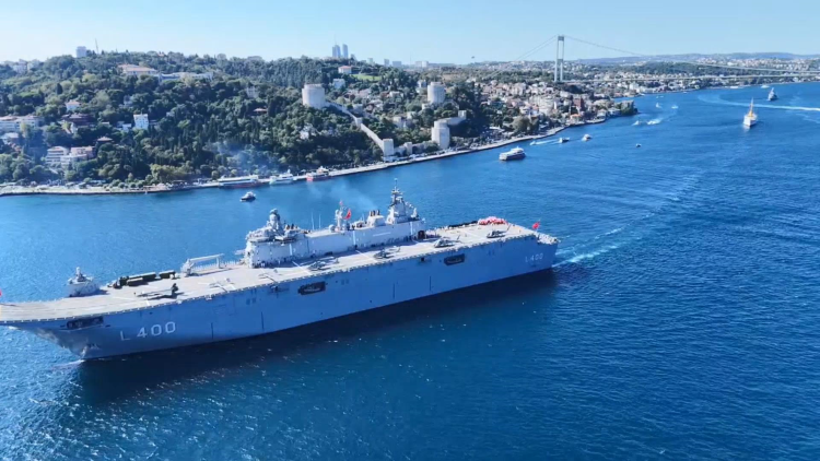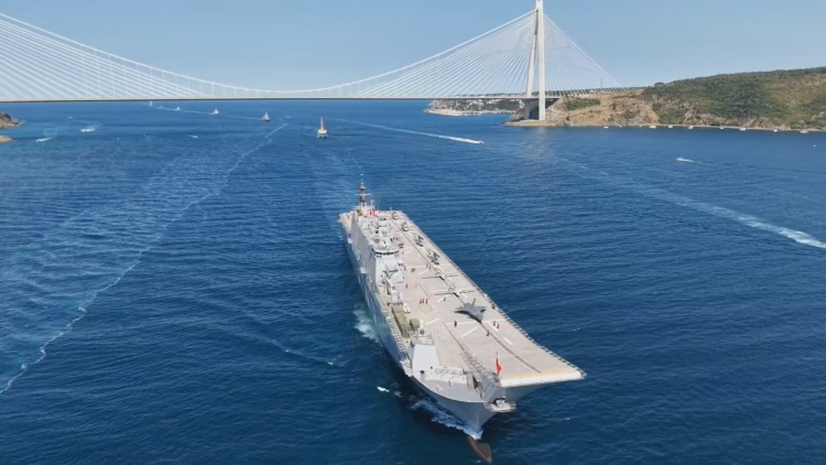 TCG Anadolu'nun, TEKNOFEST Mavi Vatan Geçişi kapsamında İstanbul Boğazı'ndaki geçiş töreni saat 15.30'da başladı. İstanbul Boğazı'ndaki geçiş törenine aralarında TCG Anadolu'nun ve TCG Savarona'nın da bulunduğu 8 gemi ve 1 denizaltı katıldı.Gemilerin İstanbul Boğazı'ndan geçişi dronla görüntülendi.