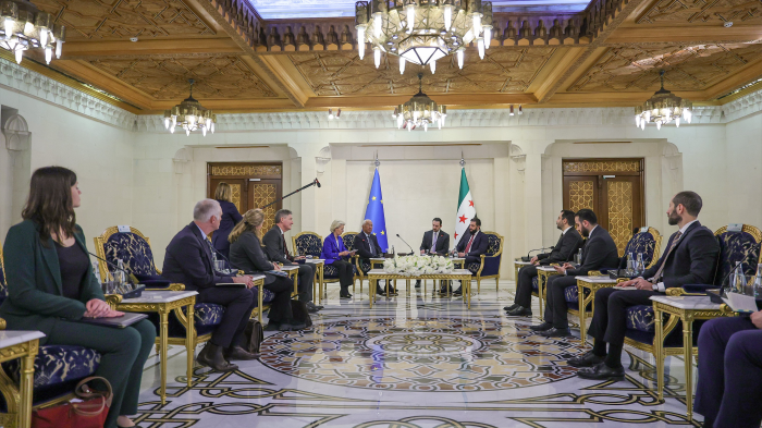 AB Komisyonu Başkanı Ursula von der Leyen ve AB Konseyi Başkanı Antonio Costa, Suriye Cumhurbaşkanı Ahmed Şara ile Şam’da bir araya geldi.