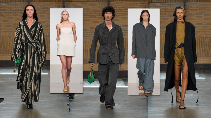 Koleksiyonda önlük elbiseler, trençkotlar, bornozlar, blazerlar, jean ceketler, polo tişörtler, çok cepli pantolonlar, kaftanlar, ofis kıyafetleri, thong sandaletler, botlar, sneaker tabanlı mokasenler, zarif tasarlanmış çantalar, gözlükler ve katlanmış geometrik küpeler ön plana çıkıyor.