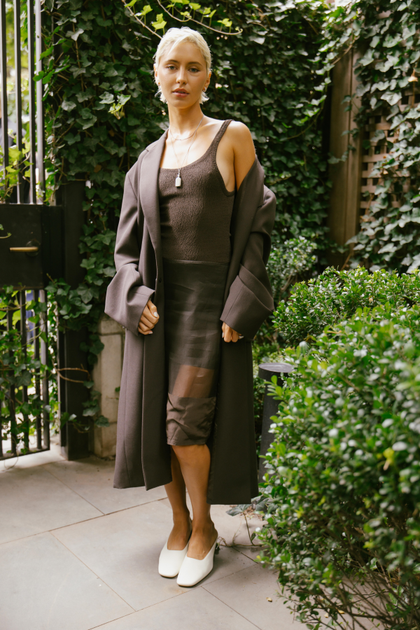 Koleksiyonun başrolündeki iç giyimin etkisi, farklı atlet ve slip yorumlarında, dantel detaylarında ve gözlük askılarında göze çarpıyor. Giysilerin siluetleri, uzun ve ince hatlıdan kısa ve iddialıya, bol ve katmanlıya kadar farklılık gösteriyor.