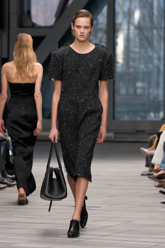 Tüm stillerde siluet uzun ve düz bir görünüm sergiliyor. Kusursuz ve dar terzilik detayları, beklenmedik sırt dekolteleri ve kolsuz dokunuşlarla tasarımlarda bir araya geliyor.